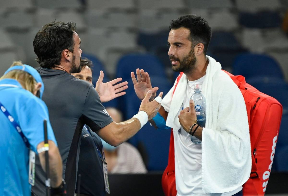 Hrálo se téměř čtyři hodiny a jak Fognini, tak v tomto případě Caruso, museli být ošetřováni.