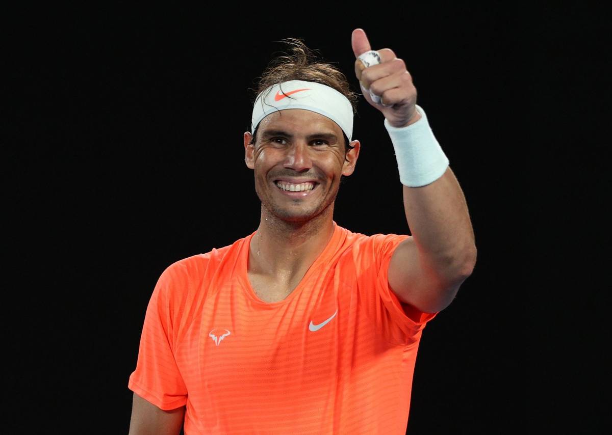 Rozesmátý Nadal na něj reagoval vztyčeným palcem...