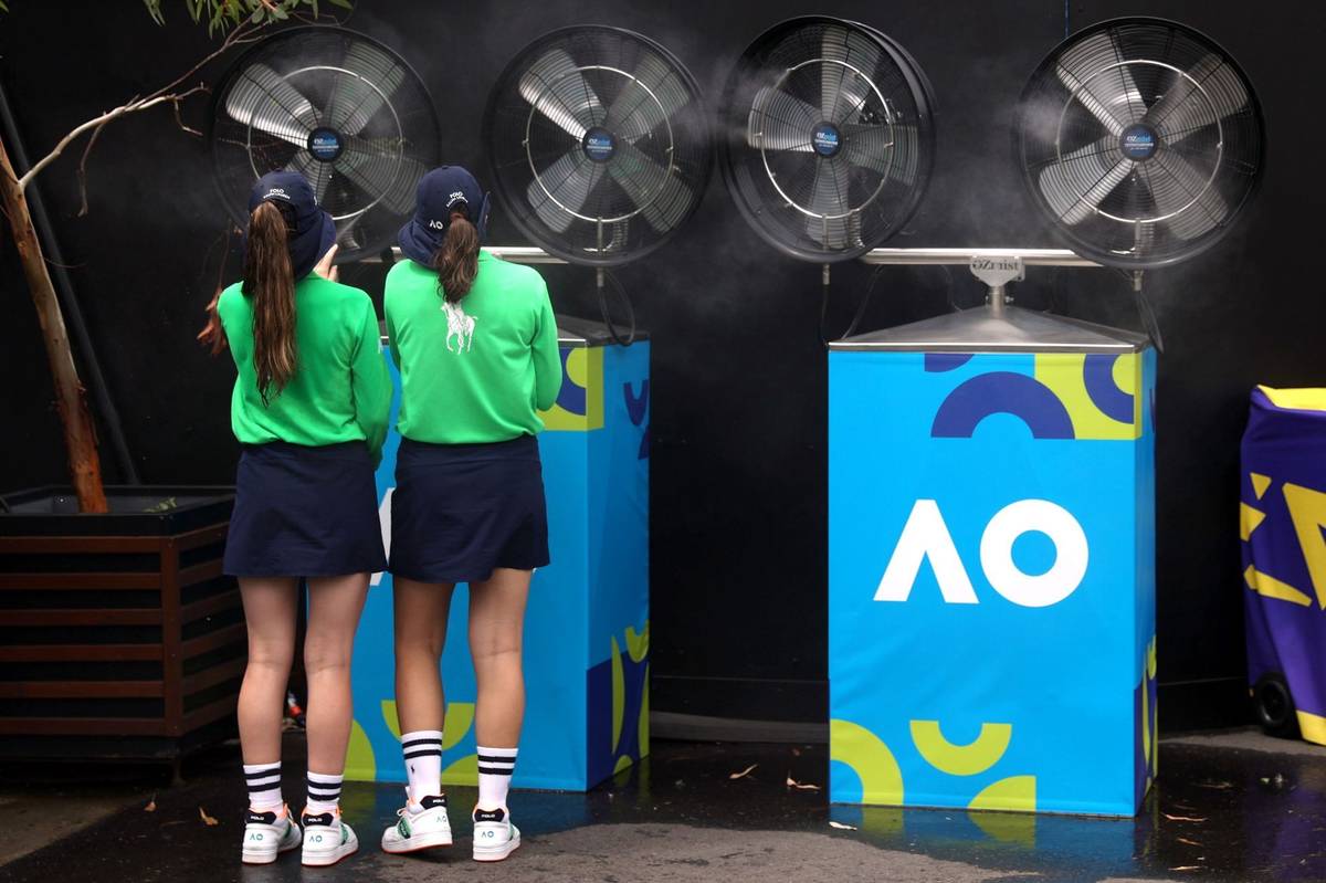 I ve čtvrtek bylo v Melbourne pořádné vedro a možností ochladit se nepohrdly ani podavačky míčků.