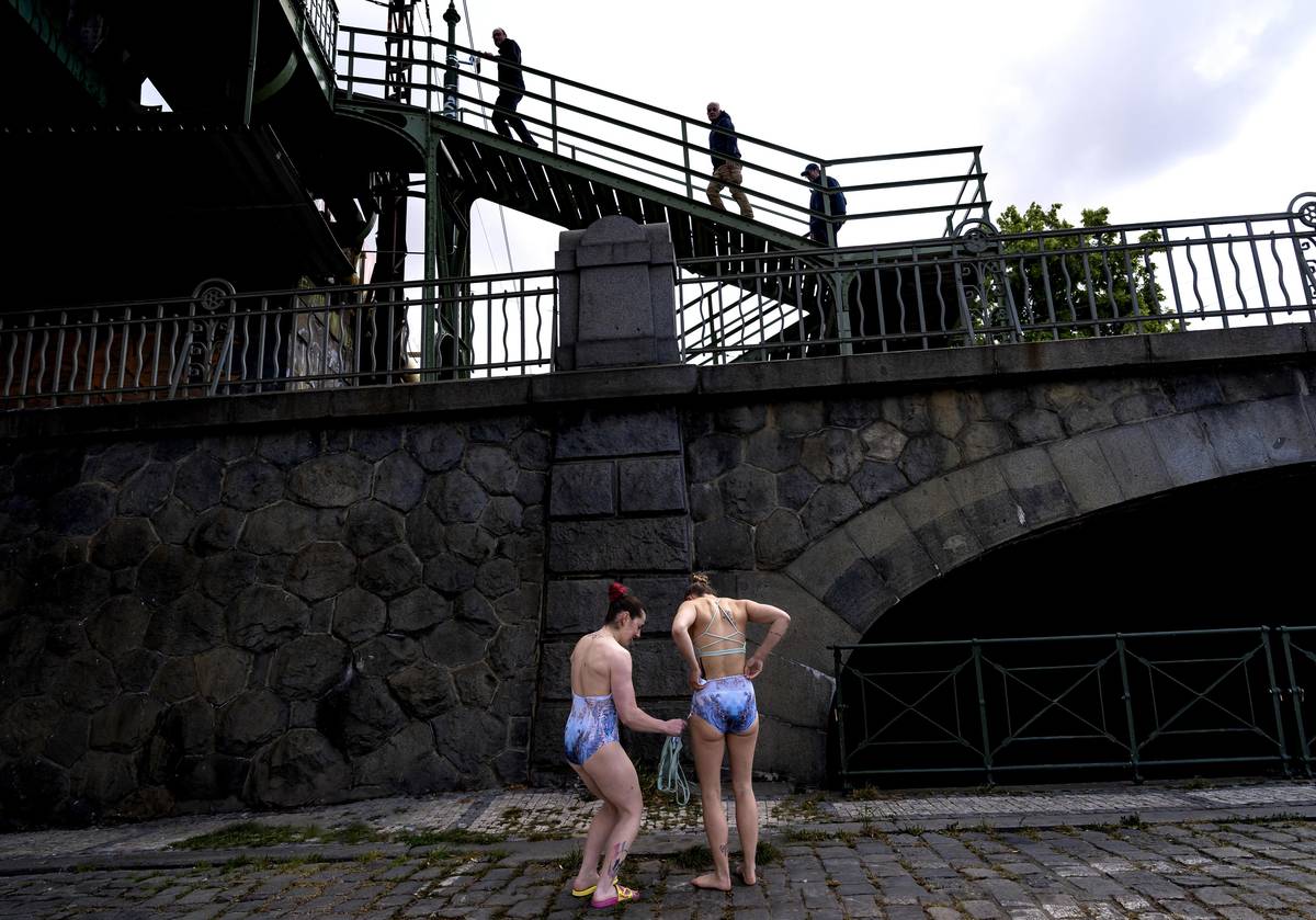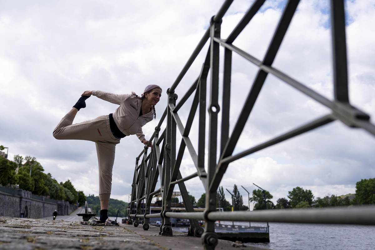 Jako opora při rozcvičení může posloužit i zábradlí u Vltavy.