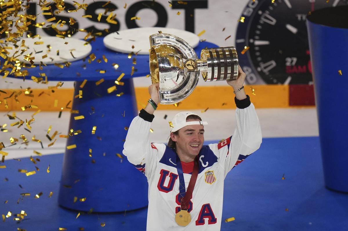 Americký kapitán Clayton Keller s trofejí pro mistry světa