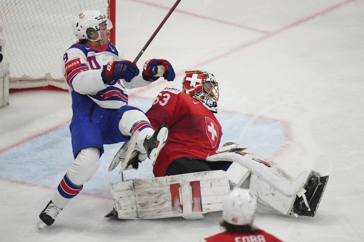 Američan Clayton Keller a švýcarský gólman Leonardo Genoni