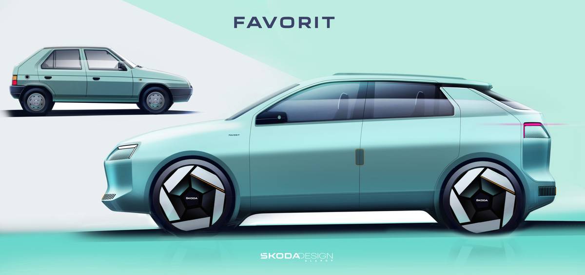 Vize modelu Škoda Favorit pro 21. století navazuje na původní tvary od studia Bertone, které doplňuje o prvky současného designového stylu Modern Solid.