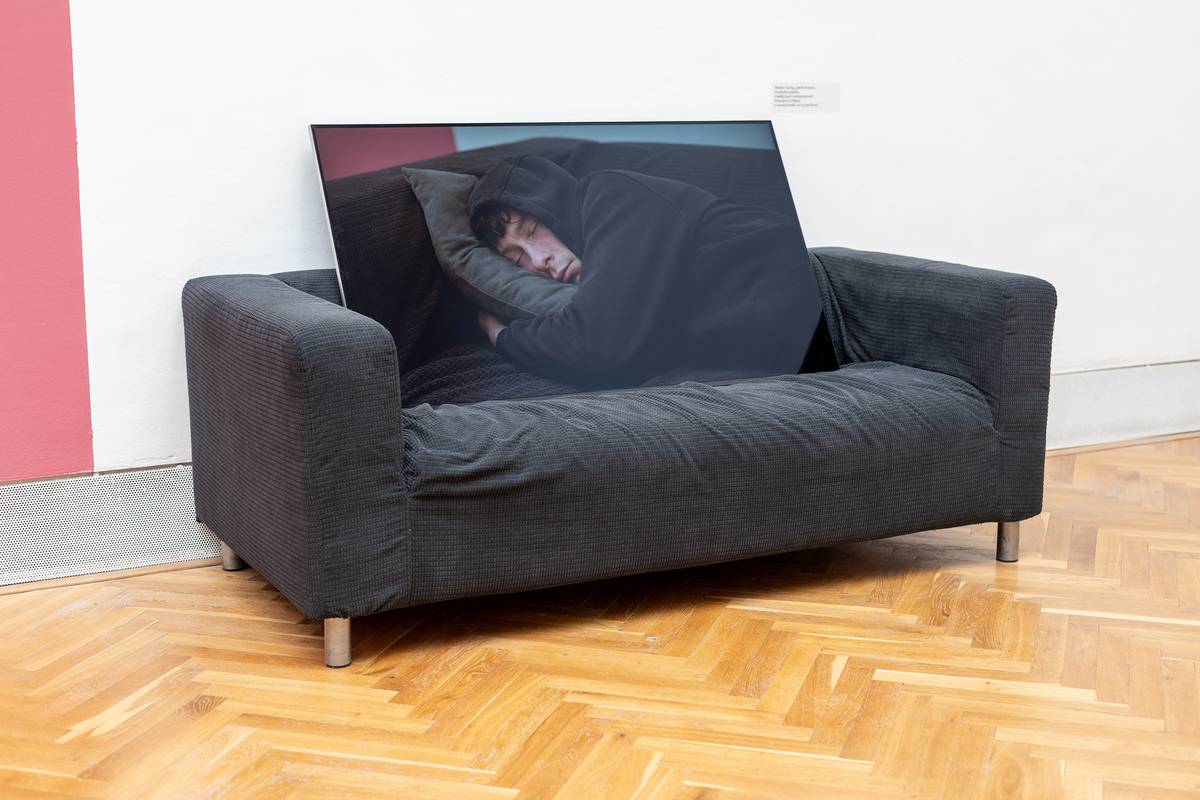 Na fotografii z výstavy Nejisté domovy, kterou lze v Domě umění města Brna vidět do 10. srpna, je prostorová socha od umělkyně Inken Reinert.