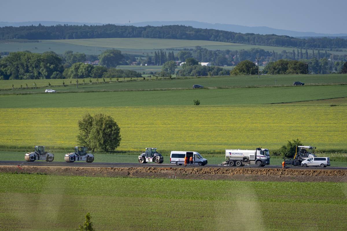 Stavba nedaleko obce Vinice kousek od Hořic. Pracuje se na asfaltu a protihlukových stěnách.