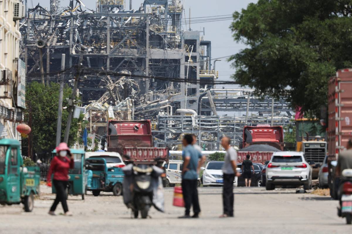 Místní obyvatelé stojí nedaleko vybuchlé chemičky.