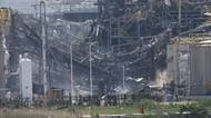 Část továrny se po výbuchu úplně zhroutila na železné trosky.