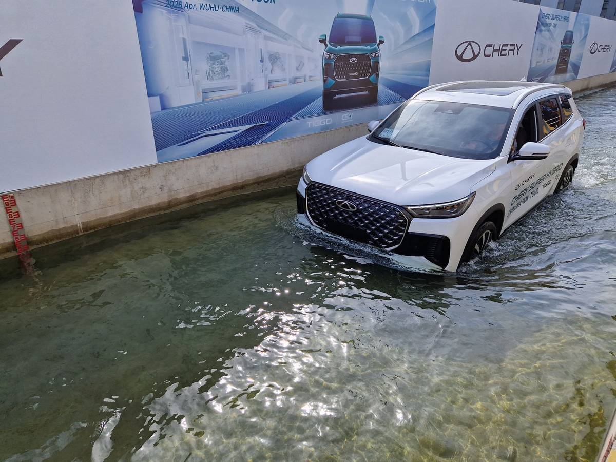 Ve vývojovém centru ukázalo Chery novinářům crash test, kdy se proti sobě rozjela dvě SUV Tiggo 9 rychlostí 56 km/h.