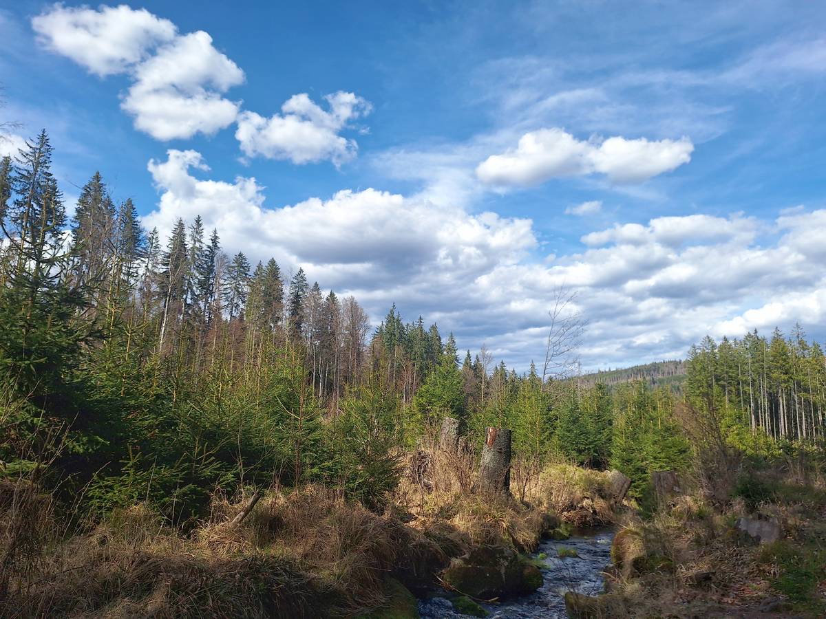 Z Hučiny pokračujeme další 4 km po zelené turistické značce do kopce k jezeru.