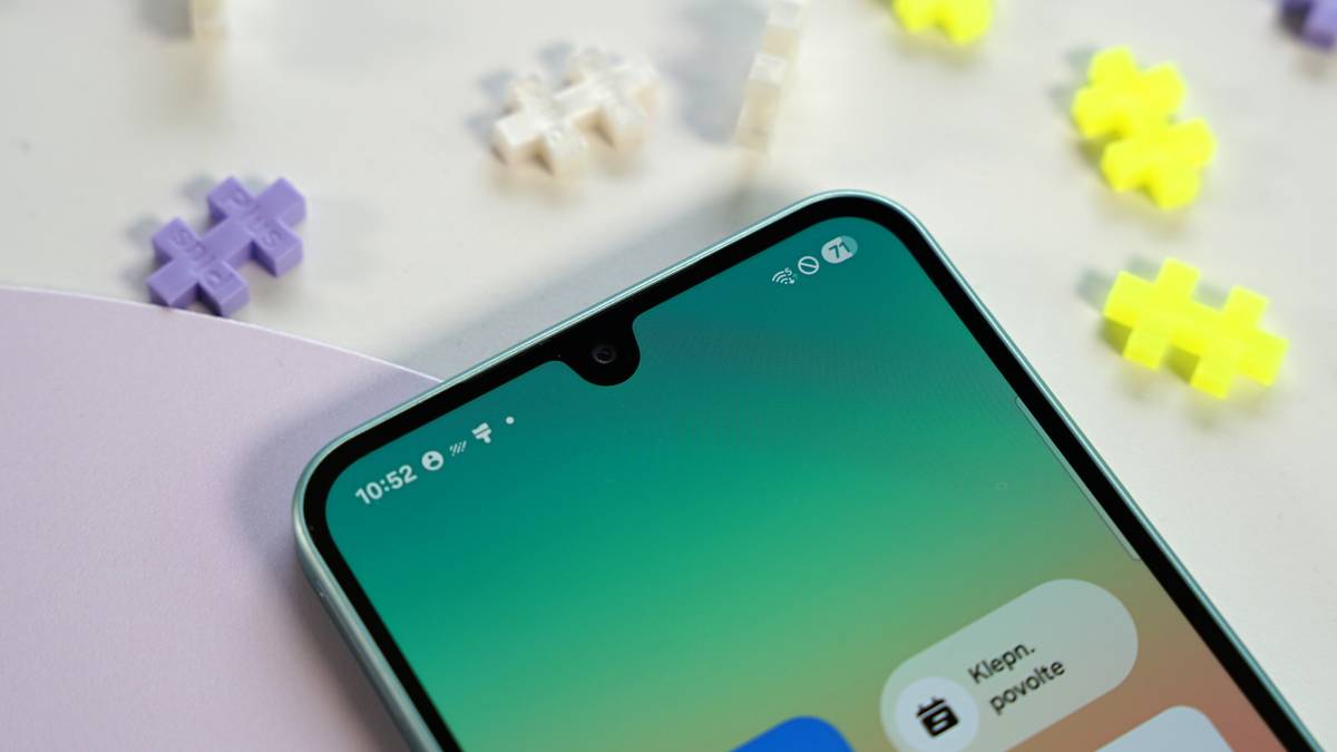 Přední kamera se u modelu Galaxy A56 5G ukrývá ve výřezu uprostřed horního okraje.