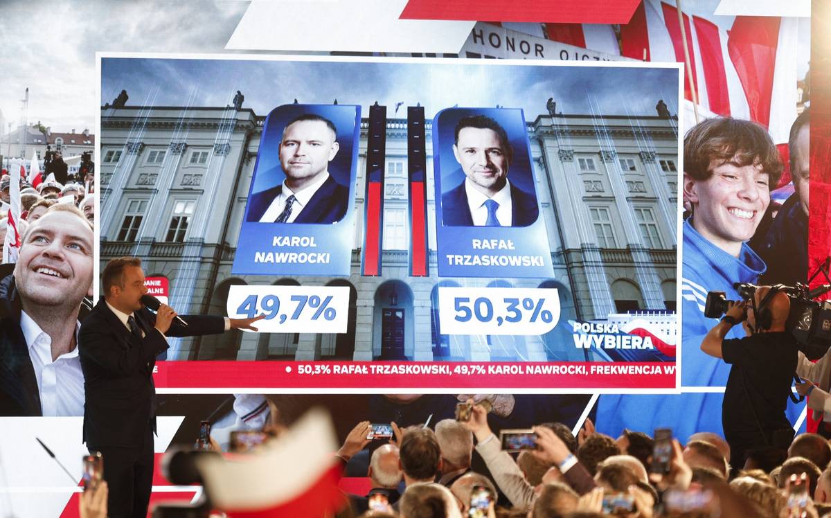 „Zvítězili jsme,“ prohlásil liberální primátor Varšavy a kandidát stávající vládní koalice Donalda Tuska Rafał Trzaskowski po zveřejnění exit pollů. Lidé v jeho štábu začali ihned jásat.