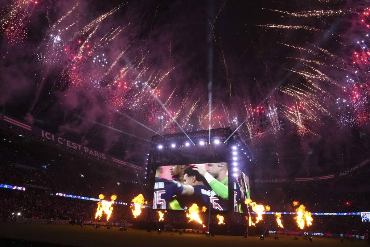 V Paříži nad Parkem princů odpalují ohňostroje.