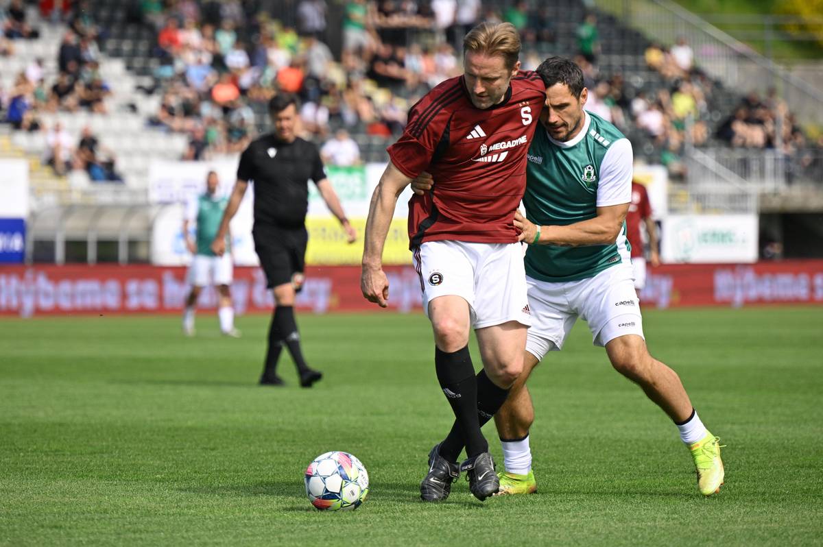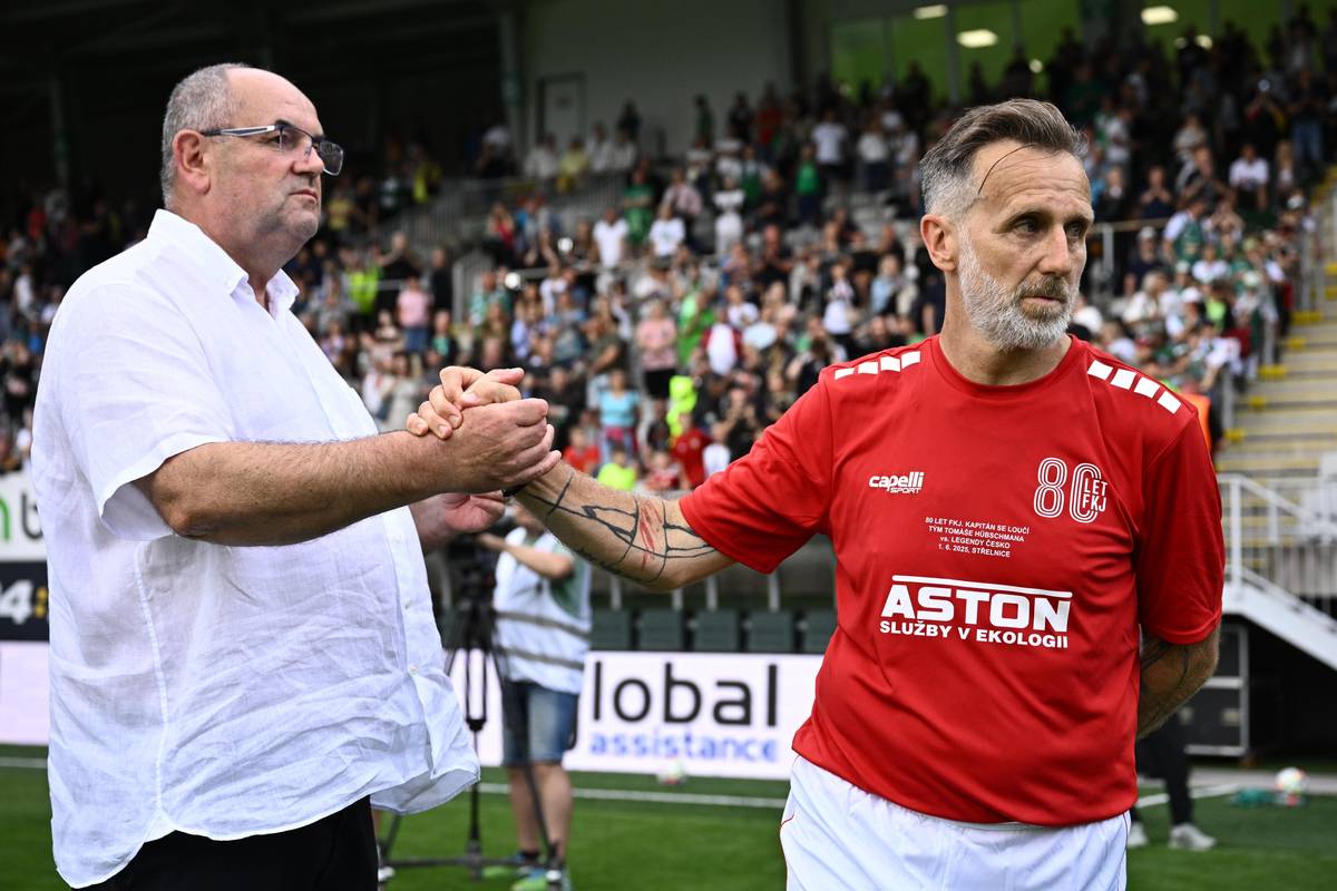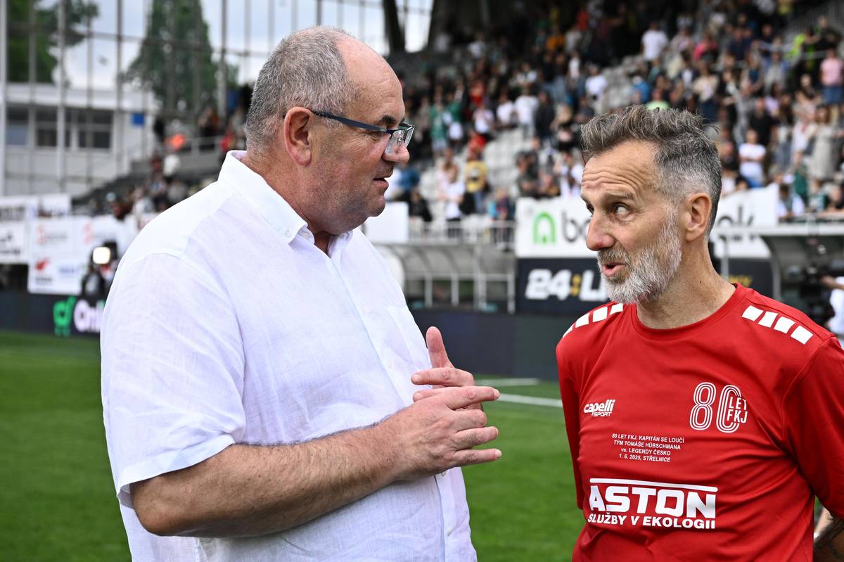 Miroslav Pelta a Karel Poborský. Rozlučka byla zároveň oslavou 80 let jabloneckého klubu.