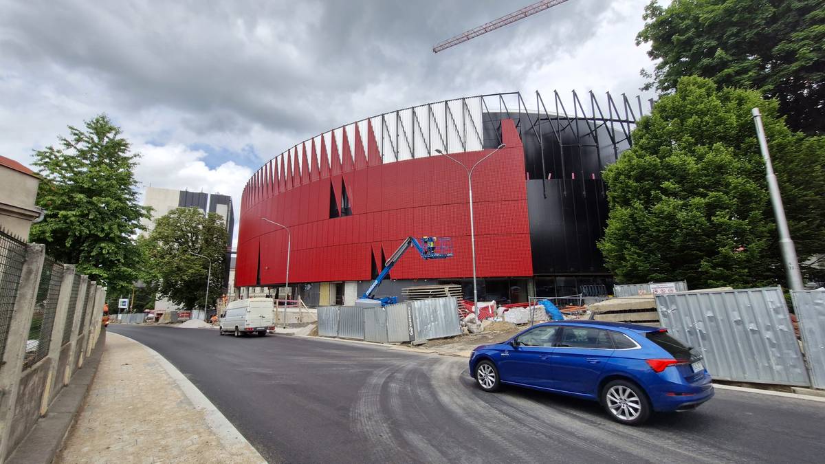 Horácká aréna bude i díky výraznému opláštění novou dominantou Jihlavy. Roste na místě legendárního zimního stadionu.