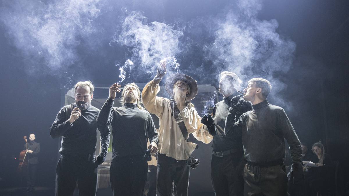 Na fotografii z inscenace Tři mušketýři a já, kterou od minulého týdne uvádí Stavovské divadlo v Praze, jsou Pavel Neškudla, Filip Březina, Igor Orozovič a Zdeněk Piškula v rolích mušketýrů.