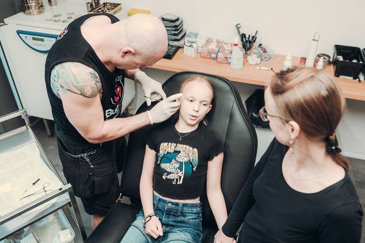 “S bolestí a strachem dokážeme u malých slečen pracovat. Často po propíchnutí ucha nevědí, jestli se budou náušnicemi kochat v zrcadle, nebo půjdou rovnou na svačinu,” říká piercer Míla Bugtcher.
