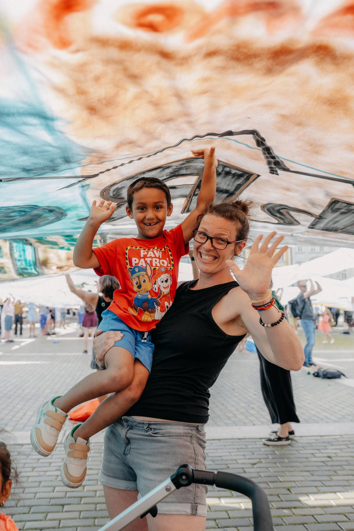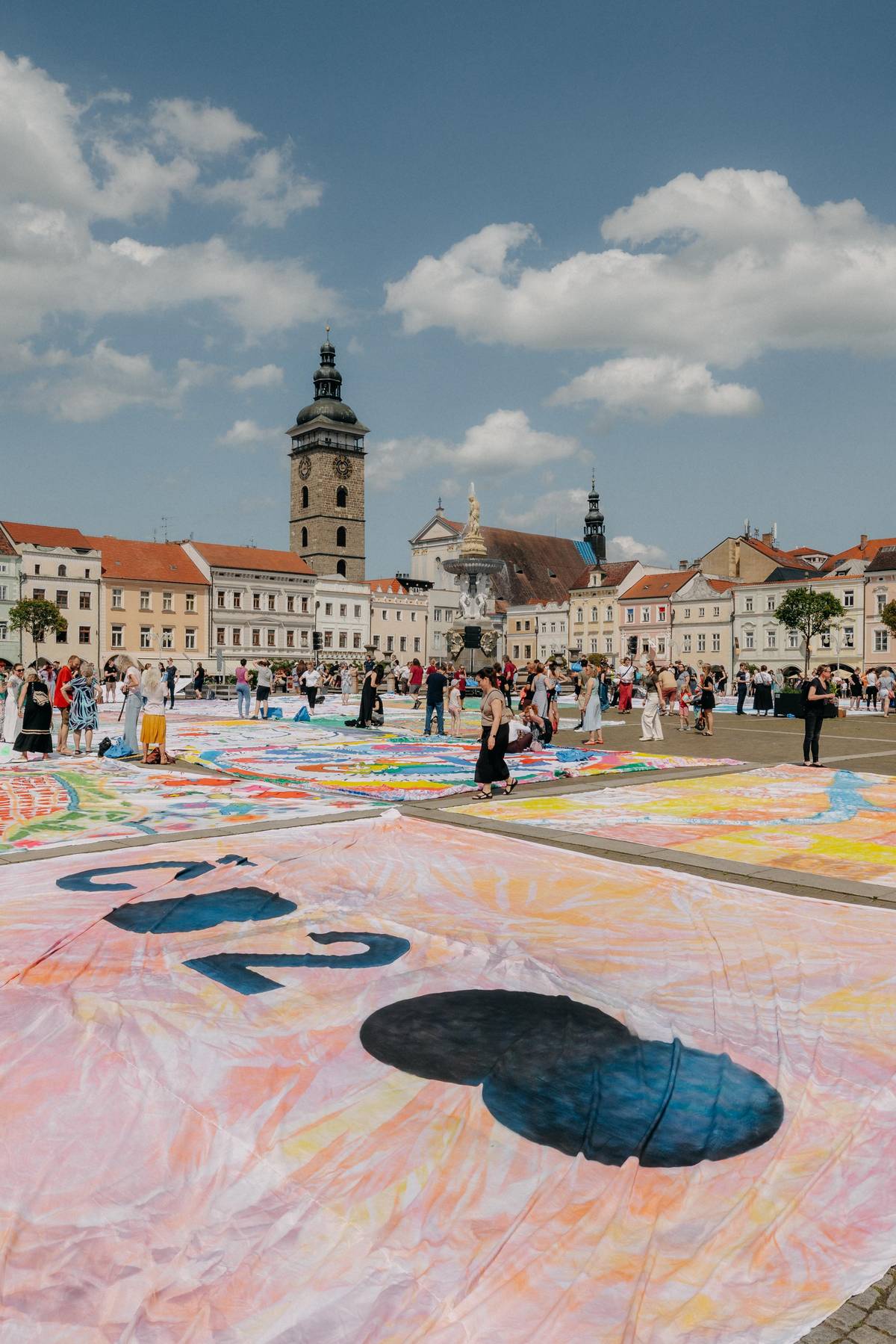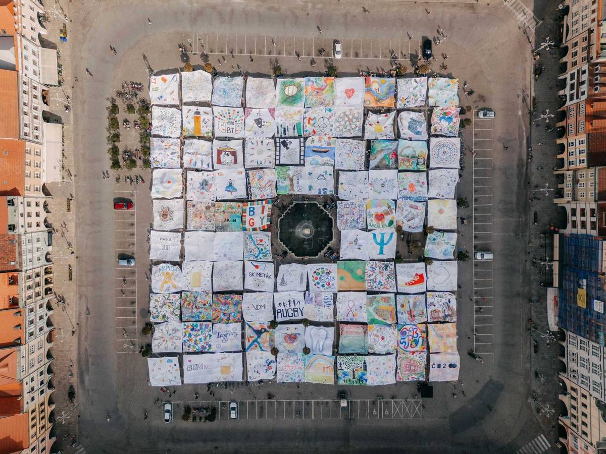 Obří obraz na náměstí Přemysla Otakara II. tvořený jednotlivými plátny