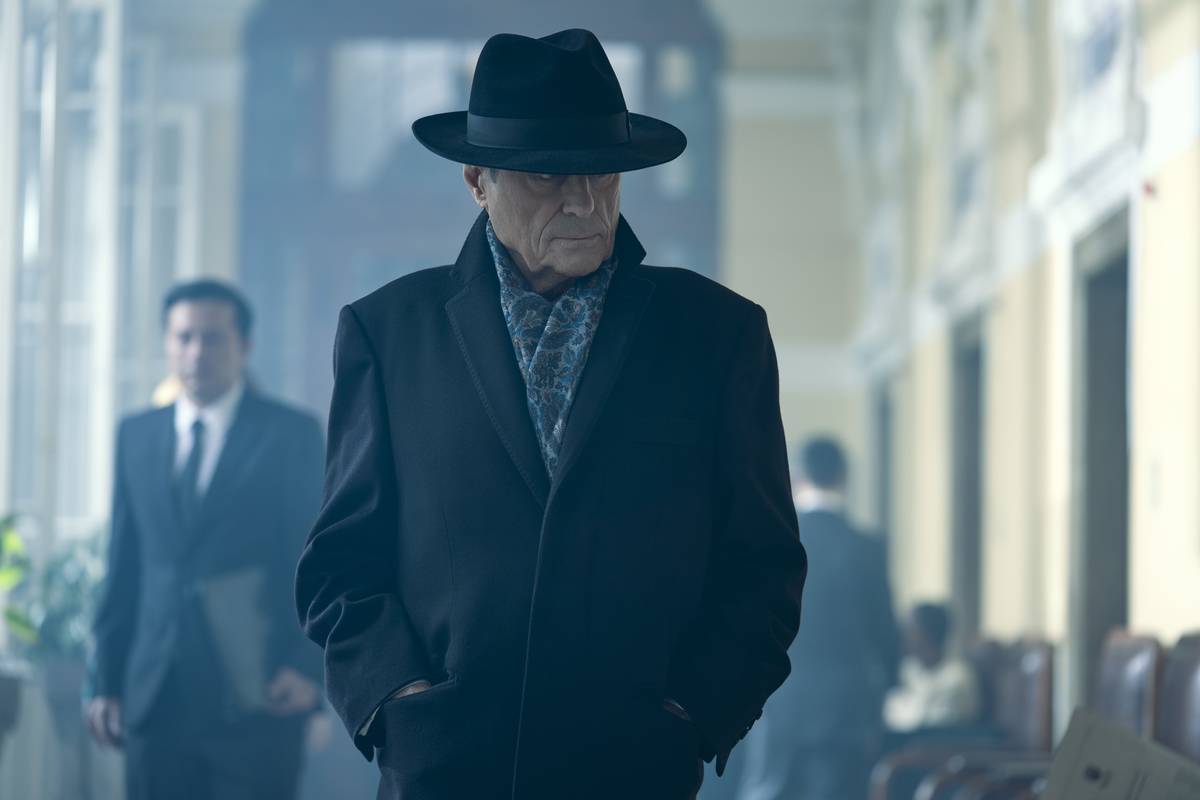 Ian McShane jako Winston Scott a Ana de Armas v roli Eve.