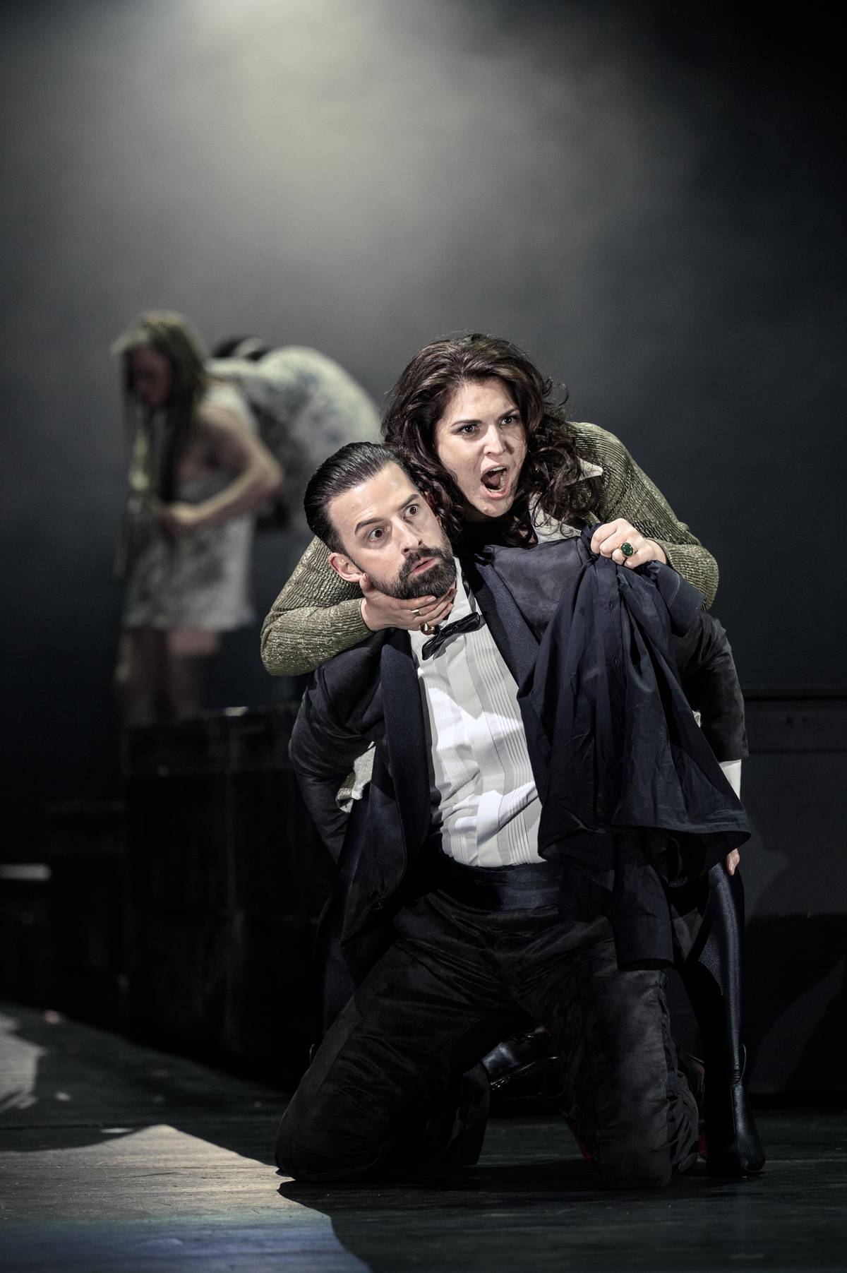 Csaba Kotlár (Vévoda z Albany) a Viktorija Korosunova (Goneril) v opeře Ariberta Reimanna Lear