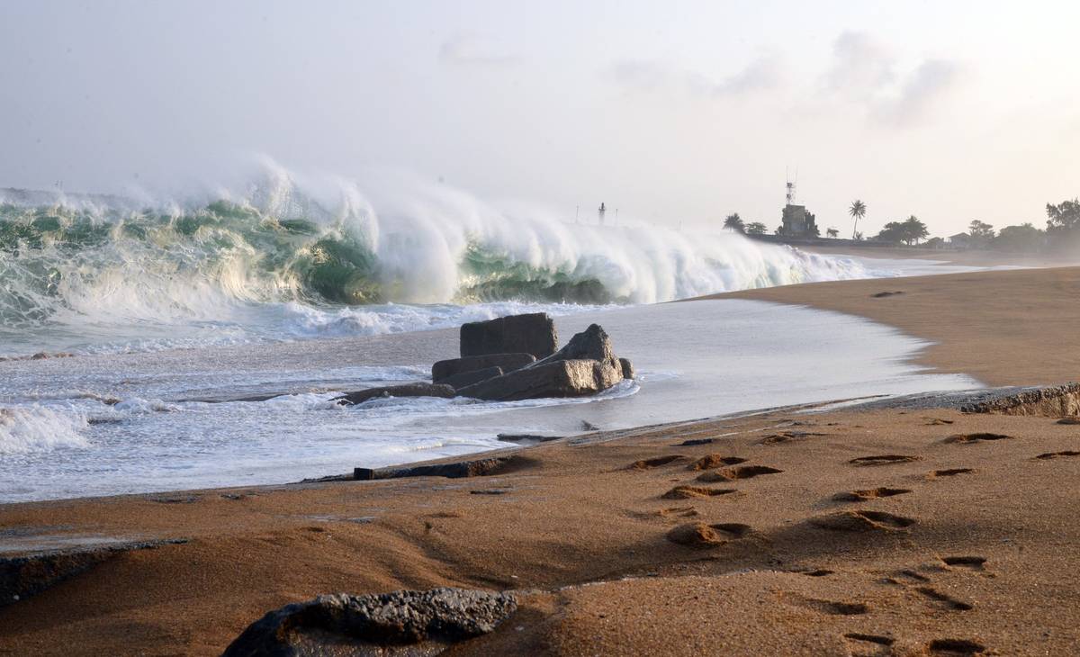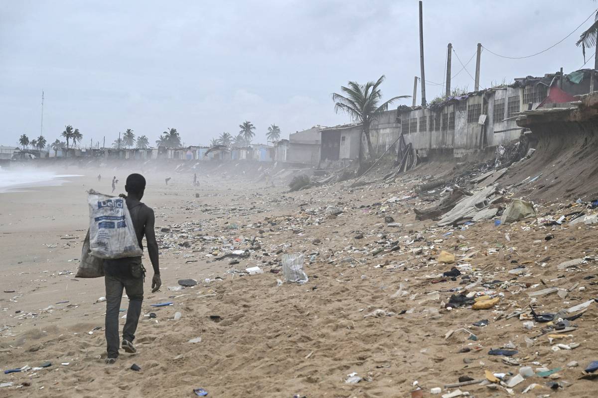 Pláž též sužuje problém zvyšující se hladiny oceánů. Lidé se tak postupně musejí vystěhovávat z pobřežních domů. Na snímku Port-Bouet v září 2024.