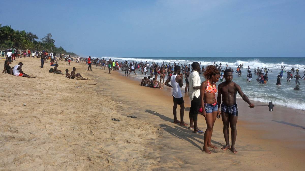 Lidé na vyčištěné pláži v Grand-Bassam, nedaleko Abidžanu, v roce 2017.