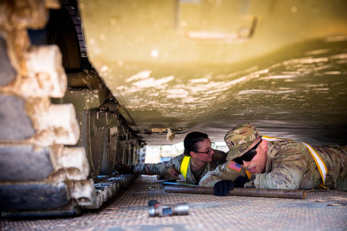 Kvůli těžké vojenské technice se na silnice, po kterých pojedou stroje, instalují kovové pláty, aby se zabránilo poškození vozovky.
