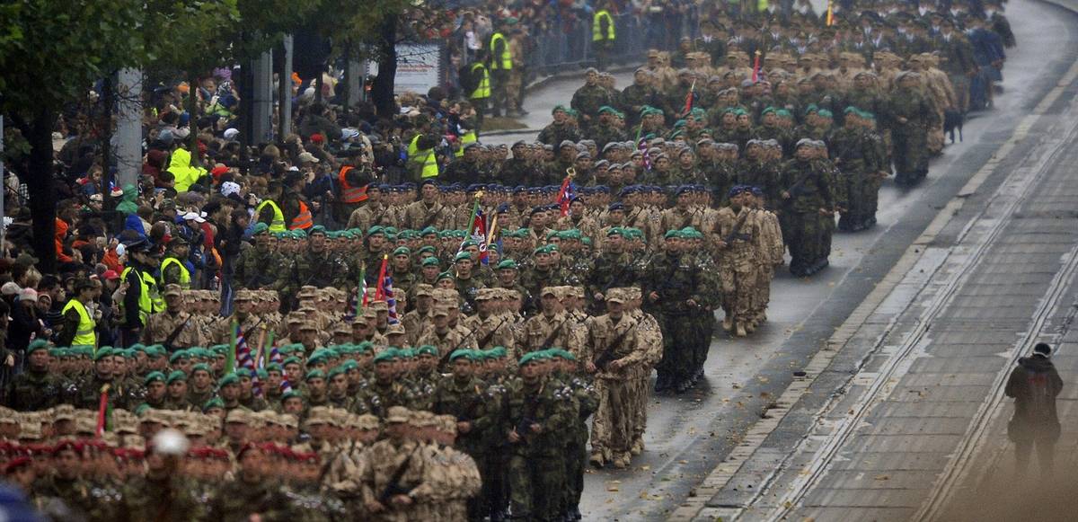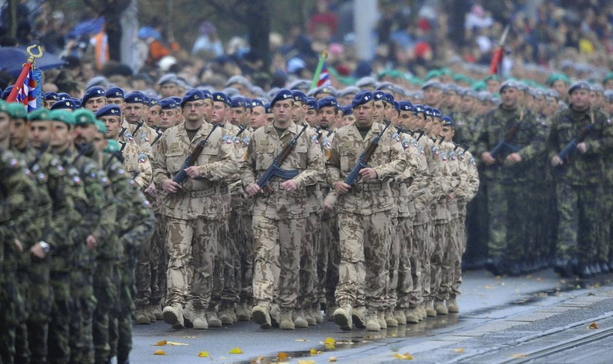 Slavnostní přehlídka při příležitosti oslav 90. výročí vzniku Československa.
