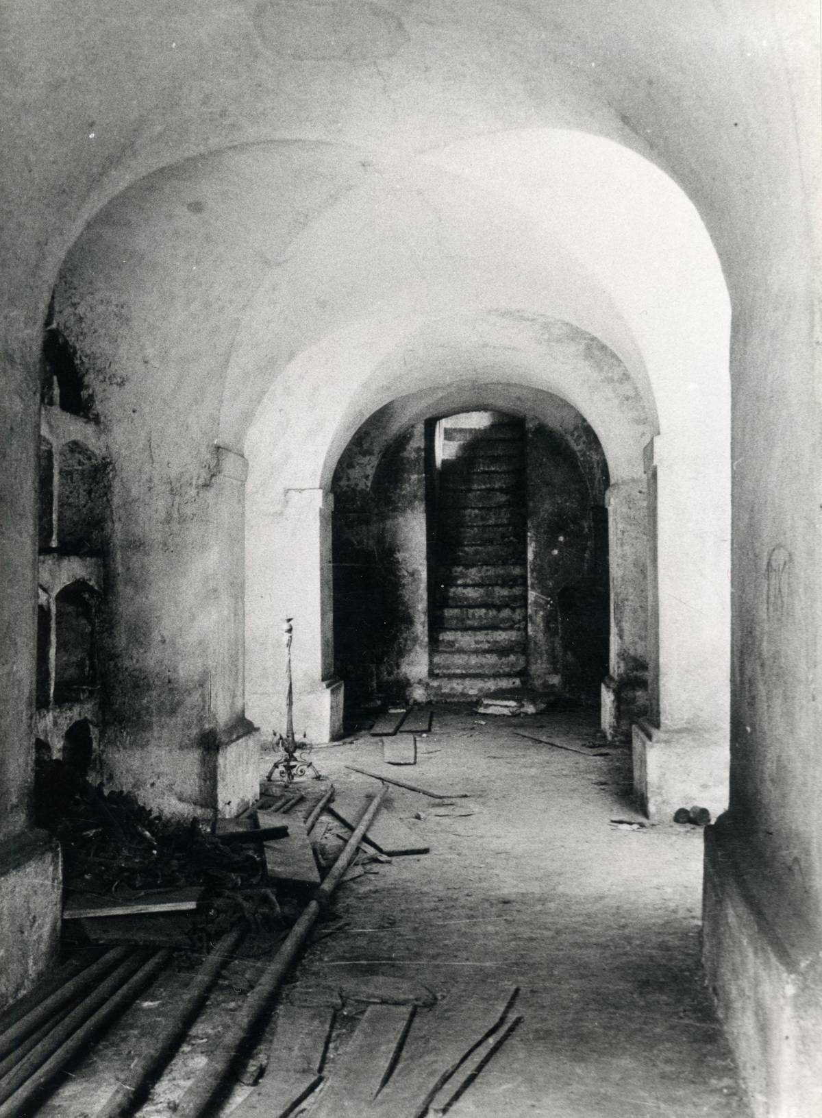 Snímek z fotopřílohy závěrečné zprávy gestapa. Parašutisté Adolf Opálka, Jan Kubiš a Josef Bublík ovládali palbou z kůru a galerie celý prostor kostela. K nim nahoru vedly pouze tyto úzké točité schody. Houževnatý odpor parašutistů si vynutil protiopatření. Skončila přehradná palba z protějších domů, která ohrožovala i příslušníky gestapa a SS. Generál Karel von Treunfeld pověřuje SS-Sturmbannführera Königa a SS-Obersturmführera Sohna vedením úderných komand. Oba zkušení frontoví velitelé nastupují se svými muži k drtivému náporu.