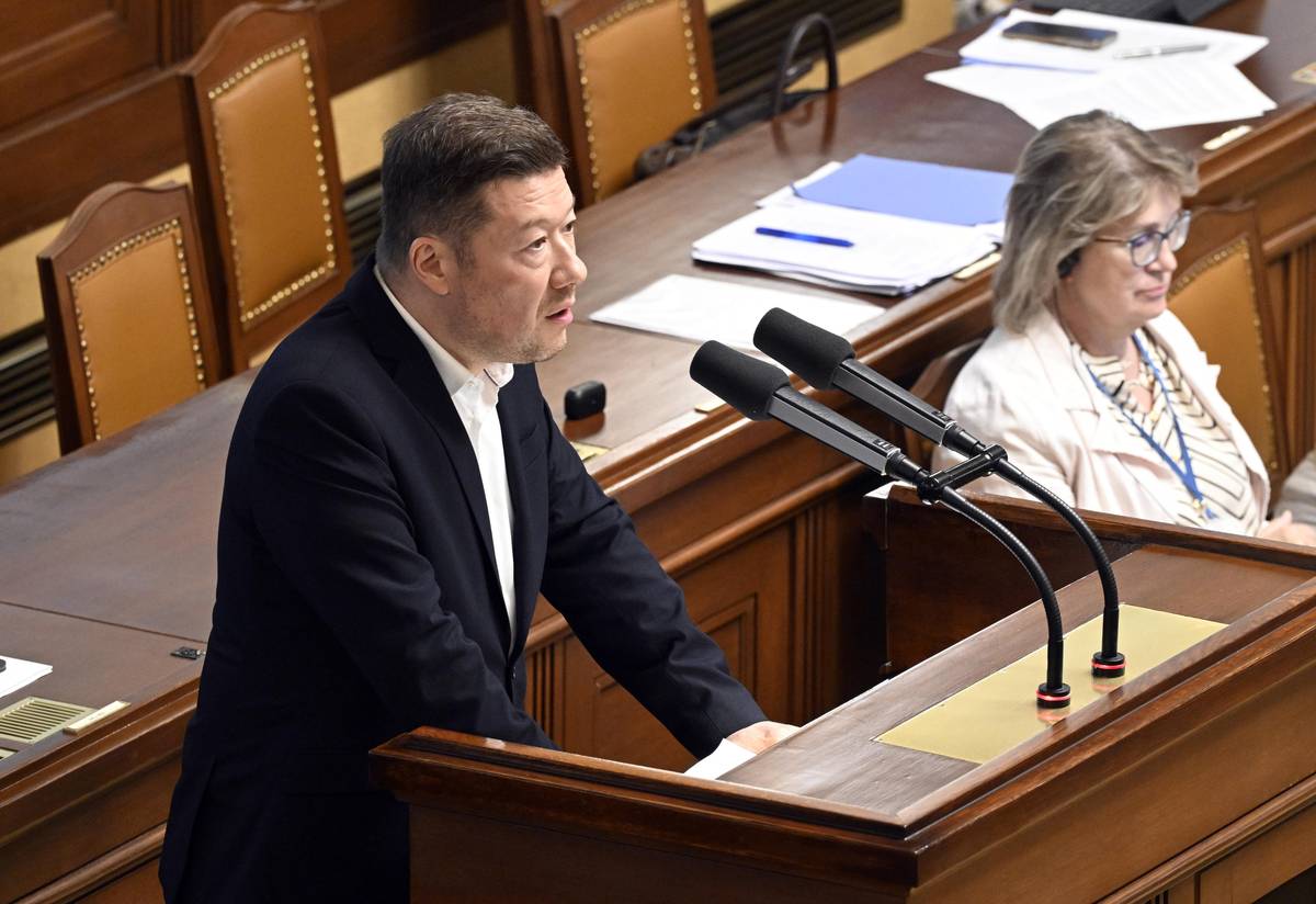 Předseda SPD Tomio Okamura na mimořádné schůzi Sněmovny.