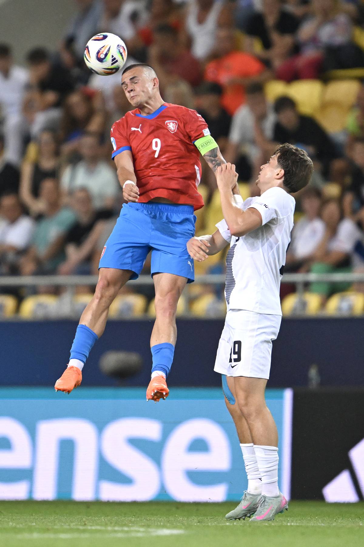 Václav Sejk v hlavičkovém souboji.