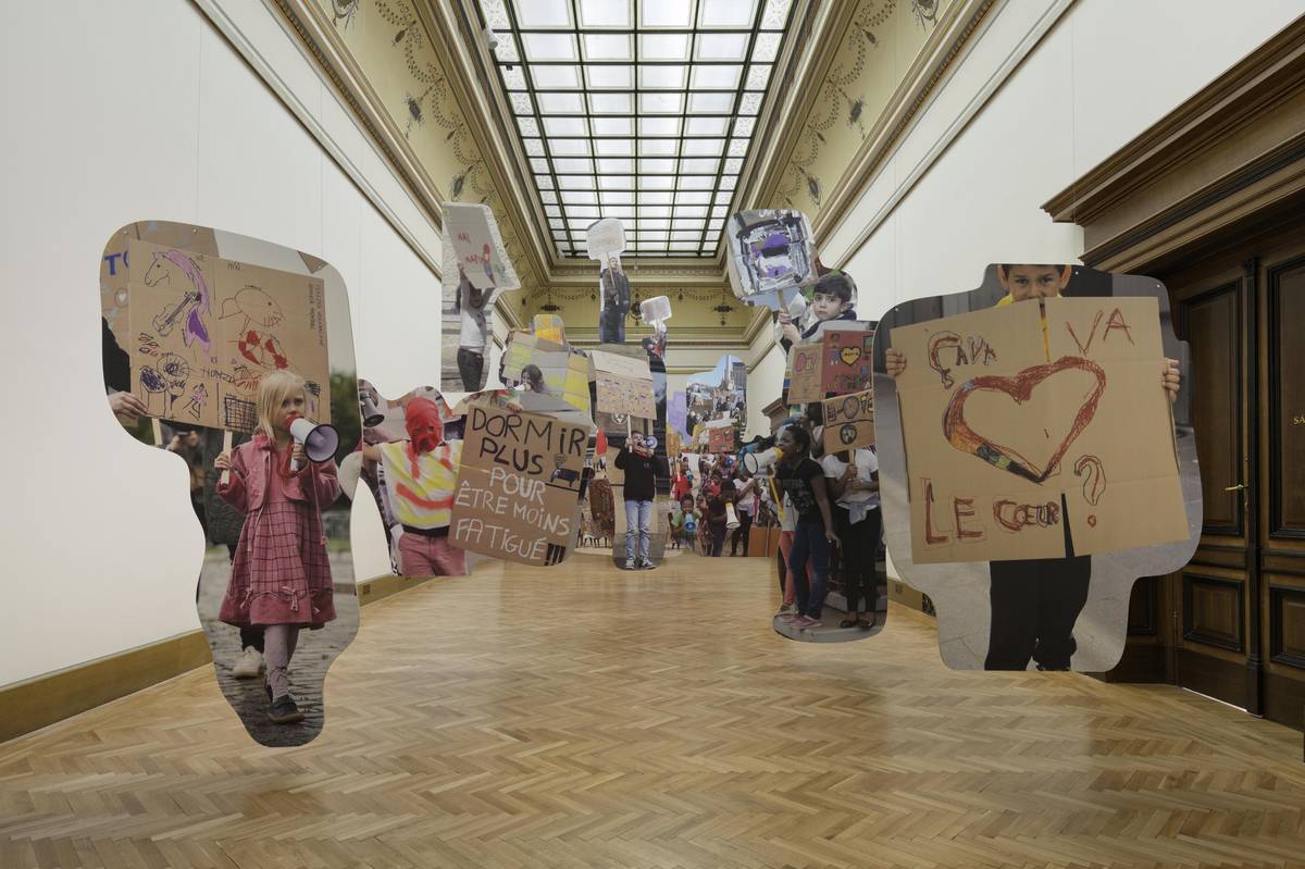 Na fotografii z výstavy děl Ivána Argoteho, kterou lze v Galerii Rudolfinum vidět do 7. září, je instalace Kdo? z roku 2011.