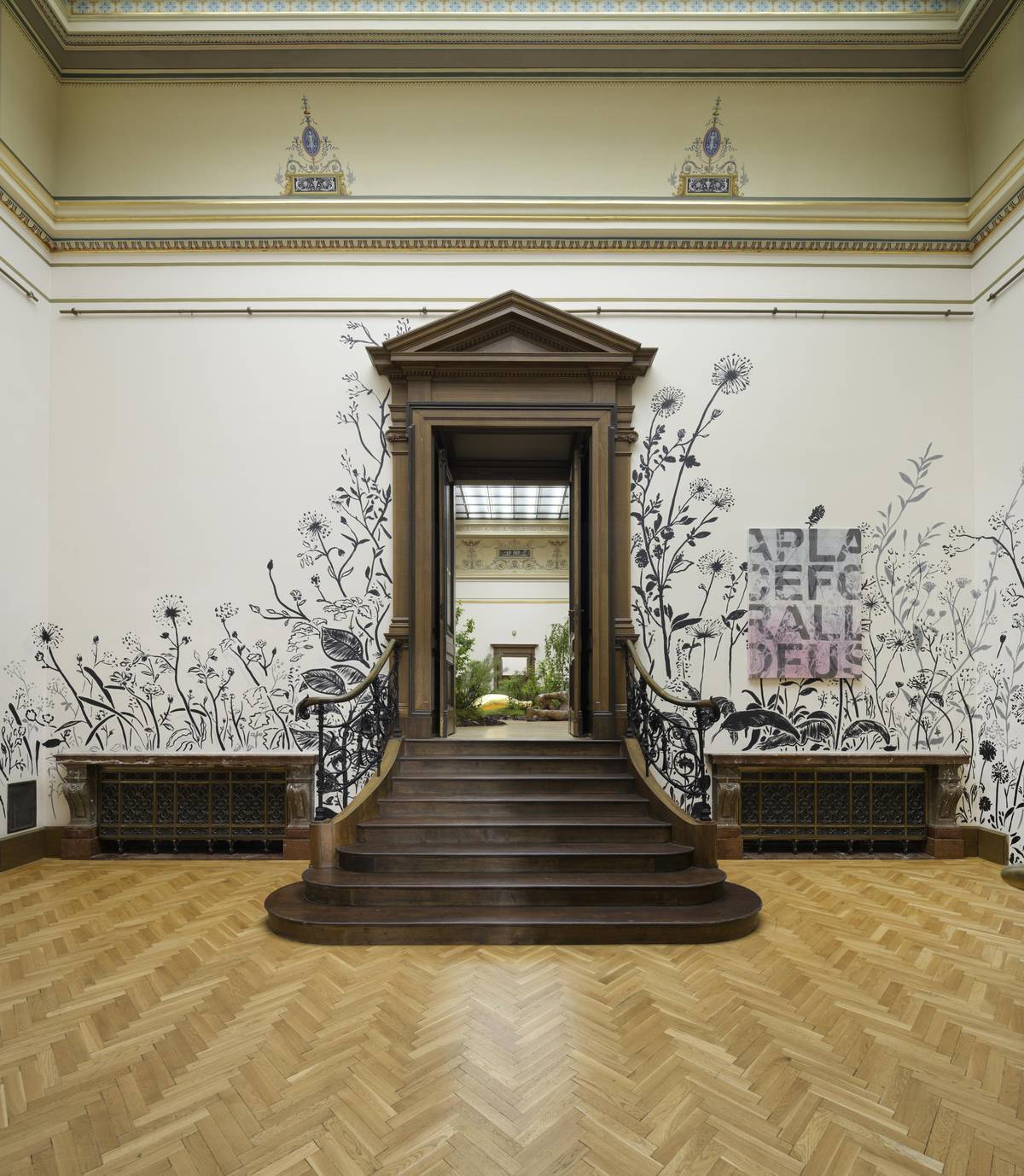 Iván Argote: Plevel (nástěnná malba), 2025 a Nádechy – Místo pro nás všechny, 2025.