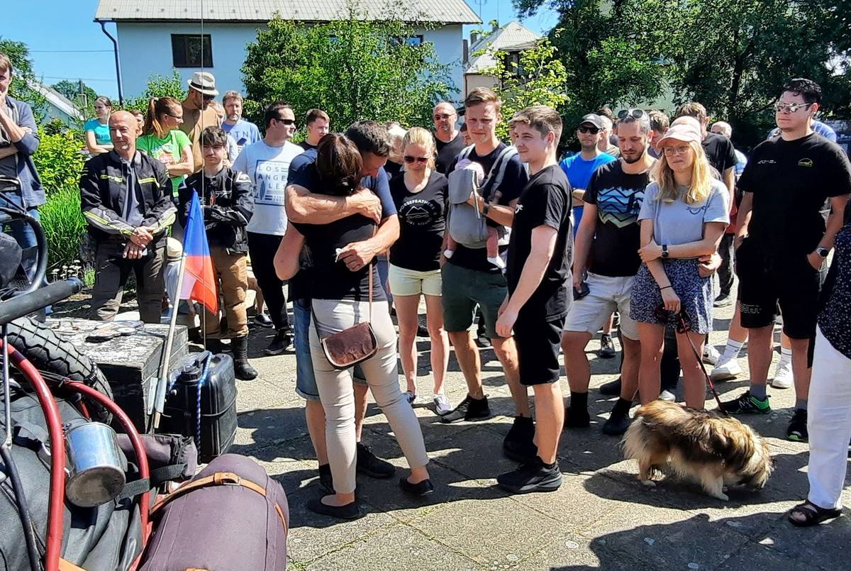 Než cestovatelé vyrazili, rozloučili se s nejbližšími. Někteří se přitom neubránili slzám.