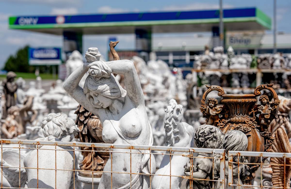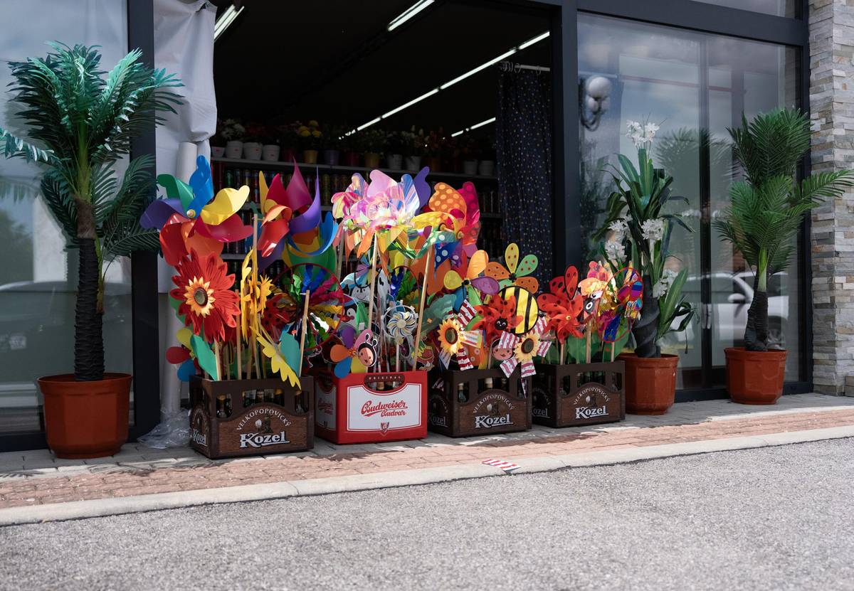Obchod s kýčem na benzinové pumpě.