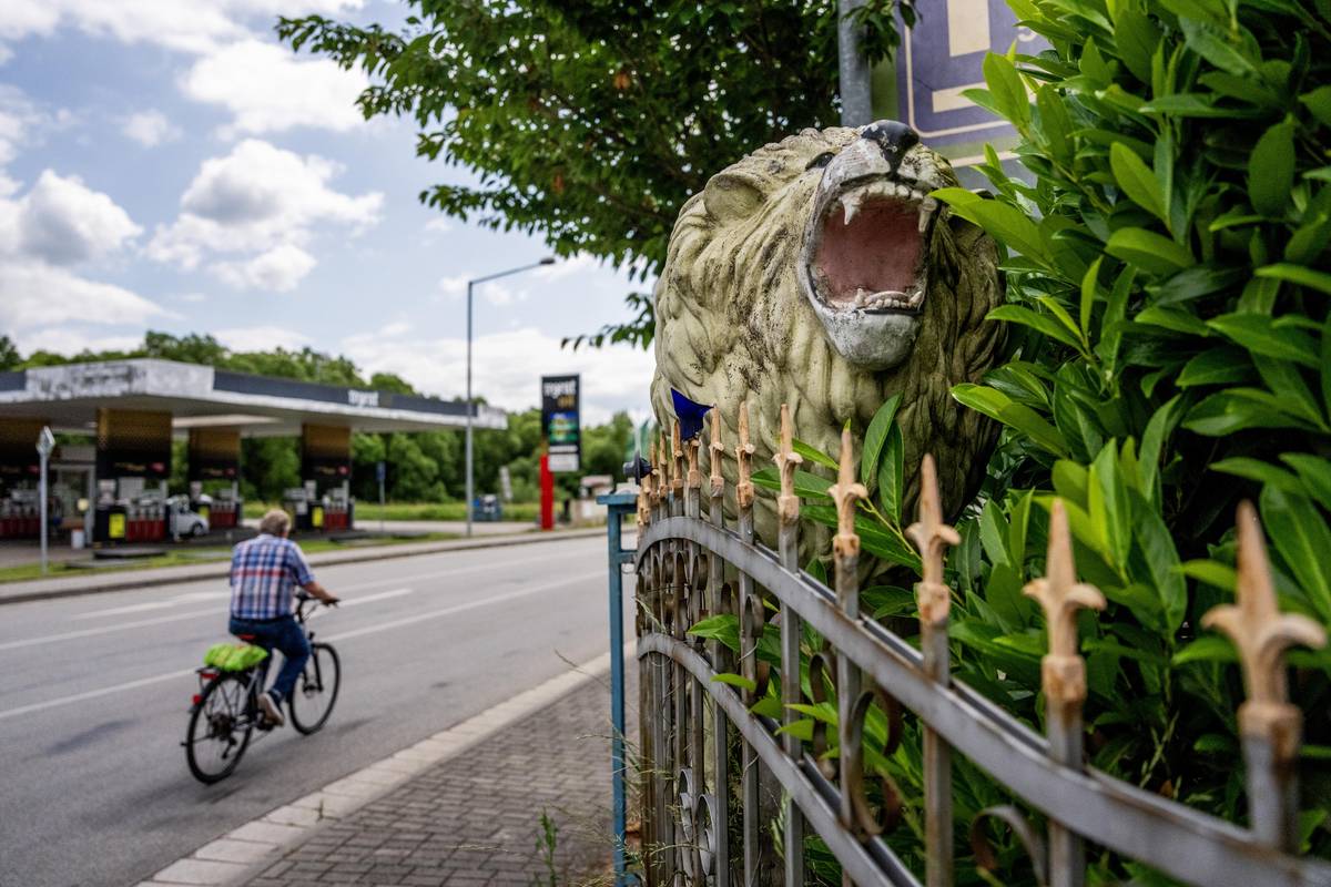 Hned za přechodem je k vidění socha lva.