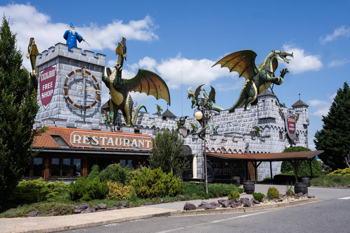 Hraniční přechod Hatě a známý obchod se vším možným a drakem na střeše.