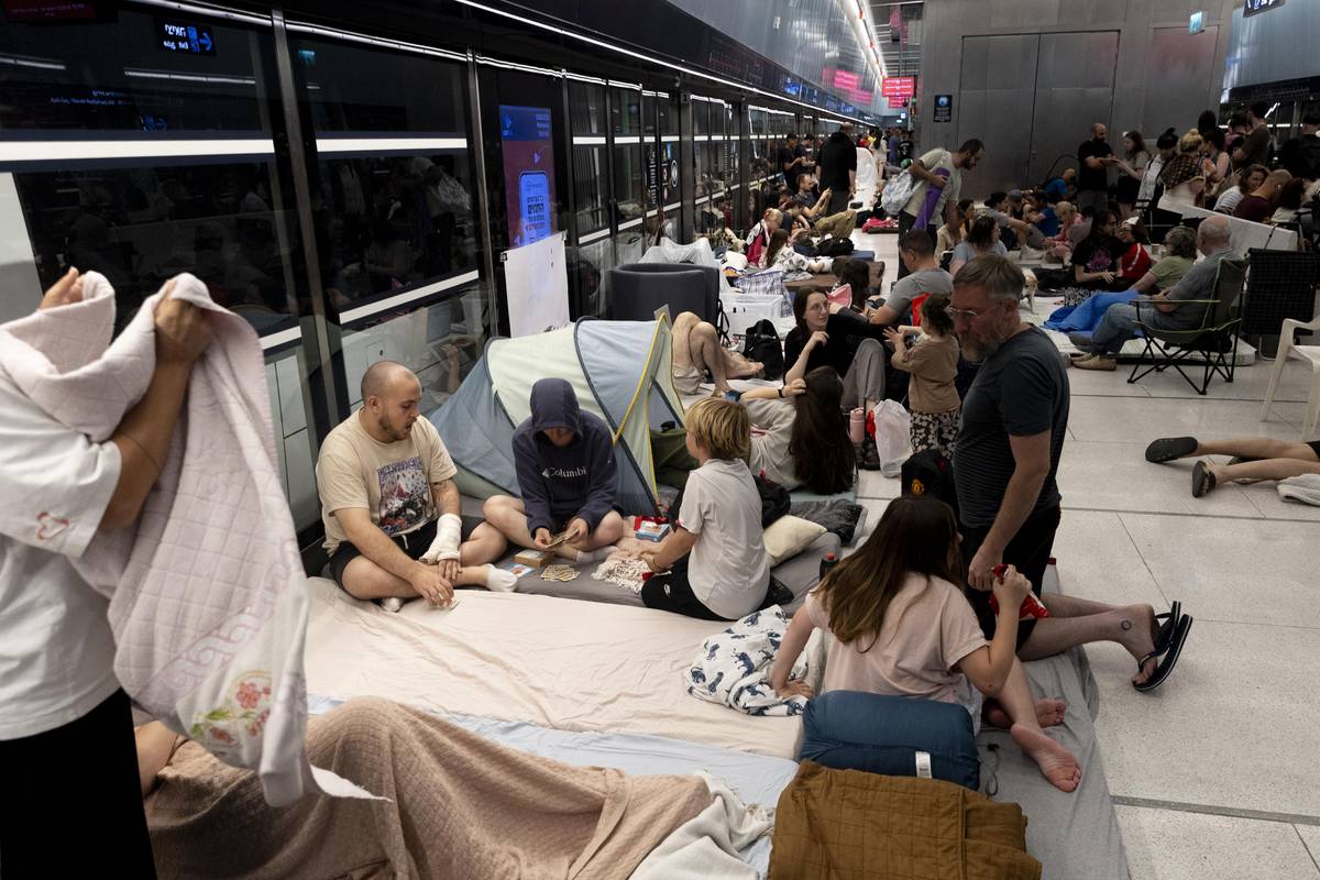 Nynější salva byla podle médií větší než ty nedávné. (Lidé se v Ramat Ganu ukrývají před iránským útokem, 18. června.)