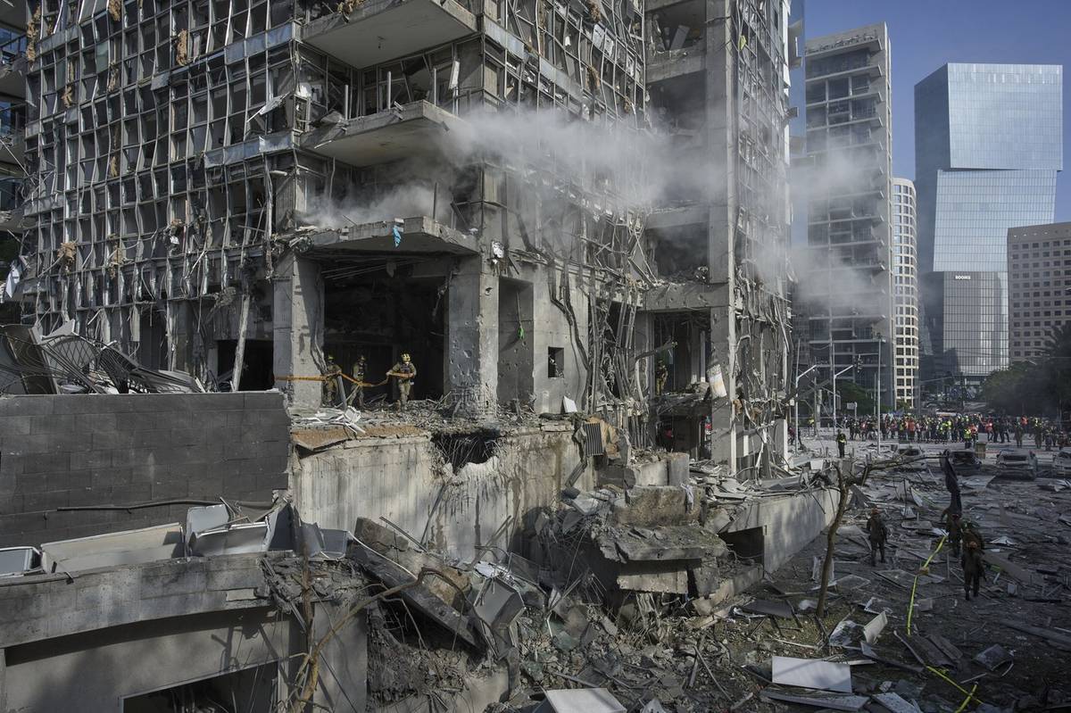 Následky přímého zásahu íránskou raketou v izraelském Ramat Ganu. (19. června)
