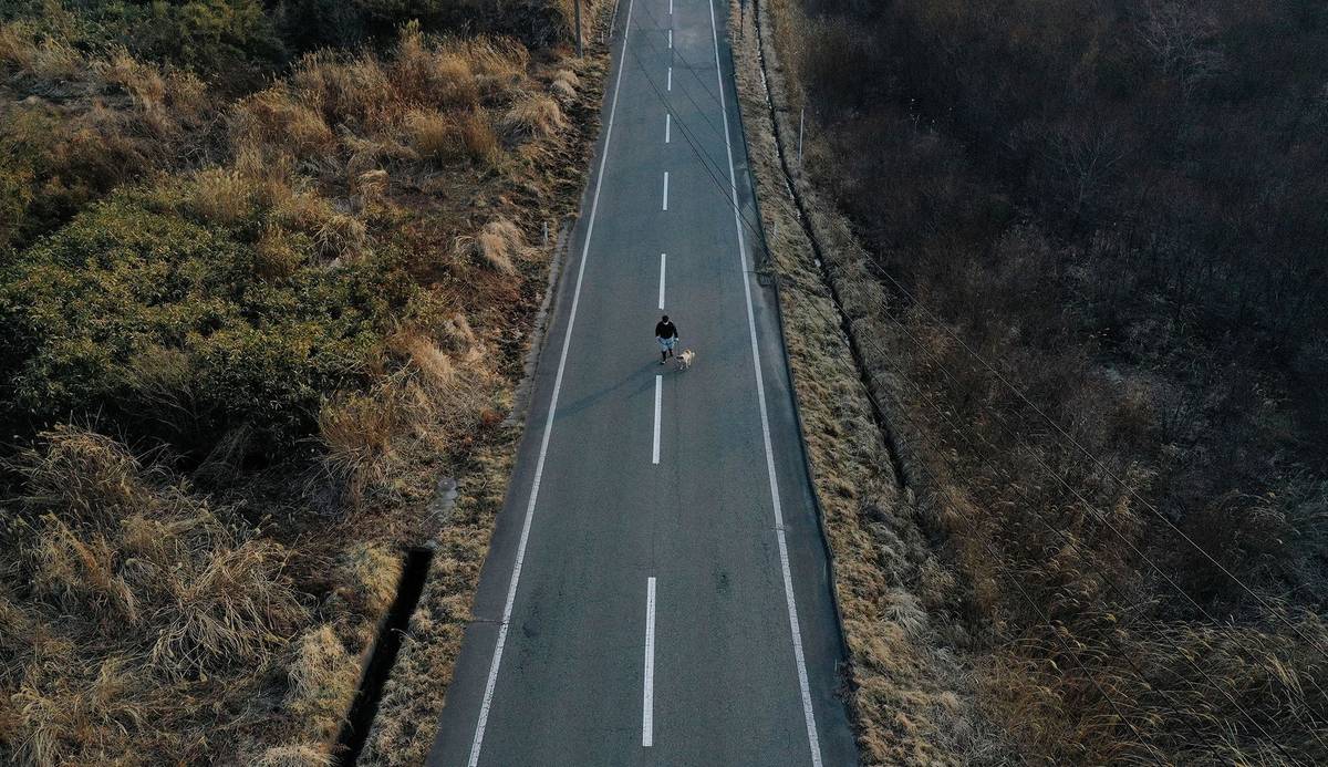 Žije 30 kilometrů od domu Hisae Unumy a každý den venčí zachráněného psa u zátarasy, která upozorňuje na míru radioaktivity.