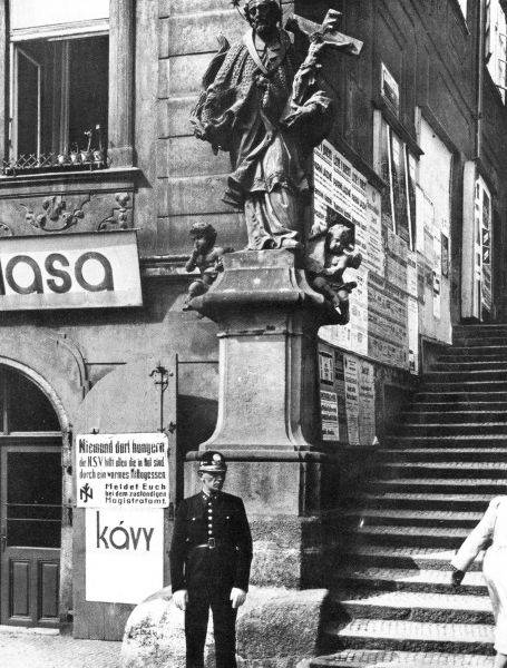Zrovna tato propagandistická akce ale skončila fiaskem, takže pojízdné kuchyně byly brzy staženy zpět do Německa a výdejny jídla zrušeny. Na fotografii stojí český četník před podobnou výdejnou jídla v Praze na konci Nerudovy ulice v Praze.