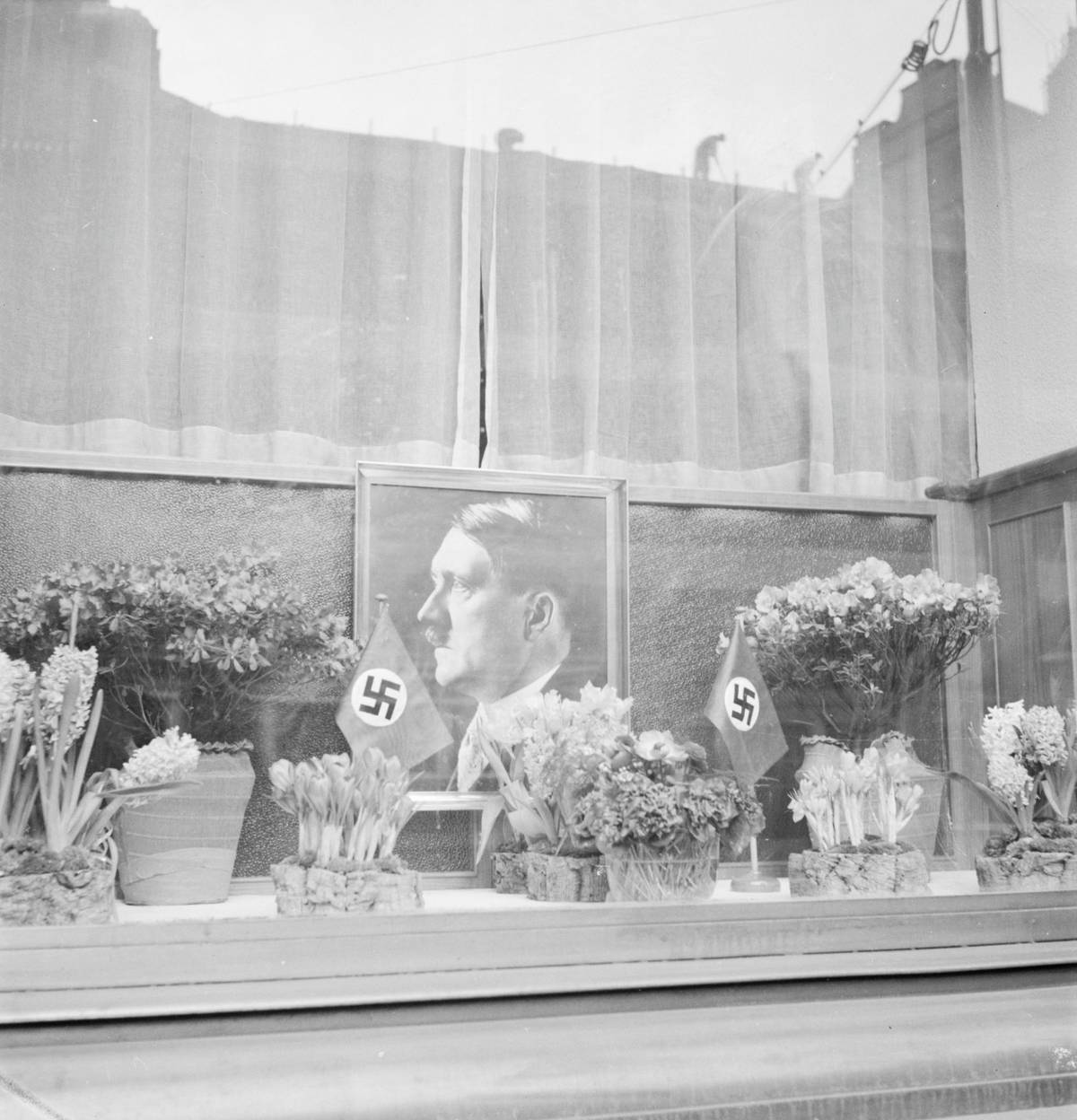 Výloha s fotografií Adolfa Hilera. Praha, 15. března 1939.