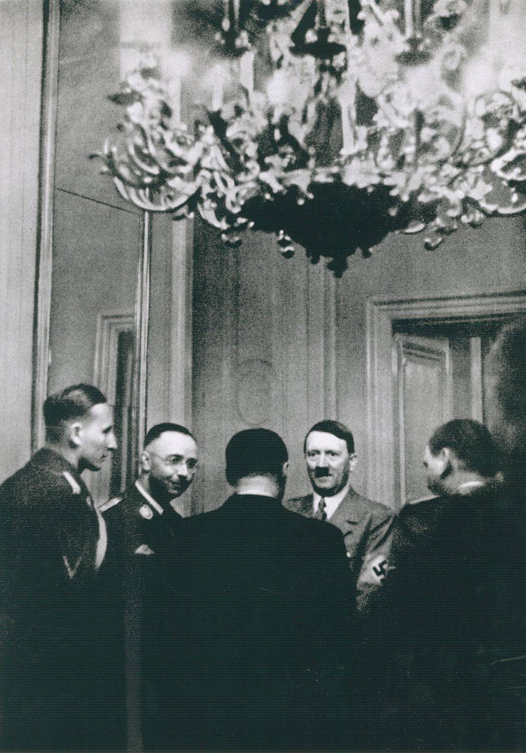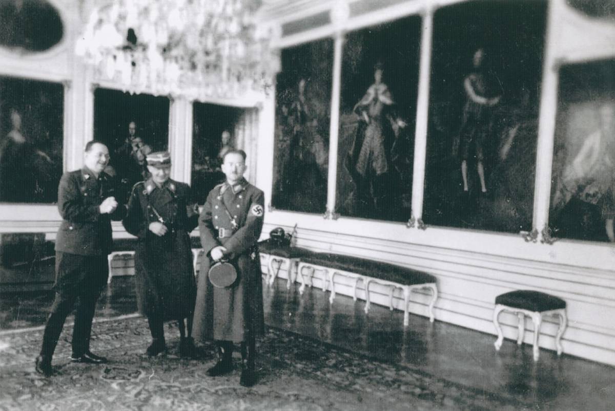 Reinhard Heydrich, Heinrich Himmler a Adolf Hitler (zleva) na Pražském hradě. Trojice mužů, kteří v čele nacistické třetí říše později po vypuknutí druhé světové války nechvalně prosluli coby organizátoři zločinů proti lidskosti apokalyptických rozměrů.