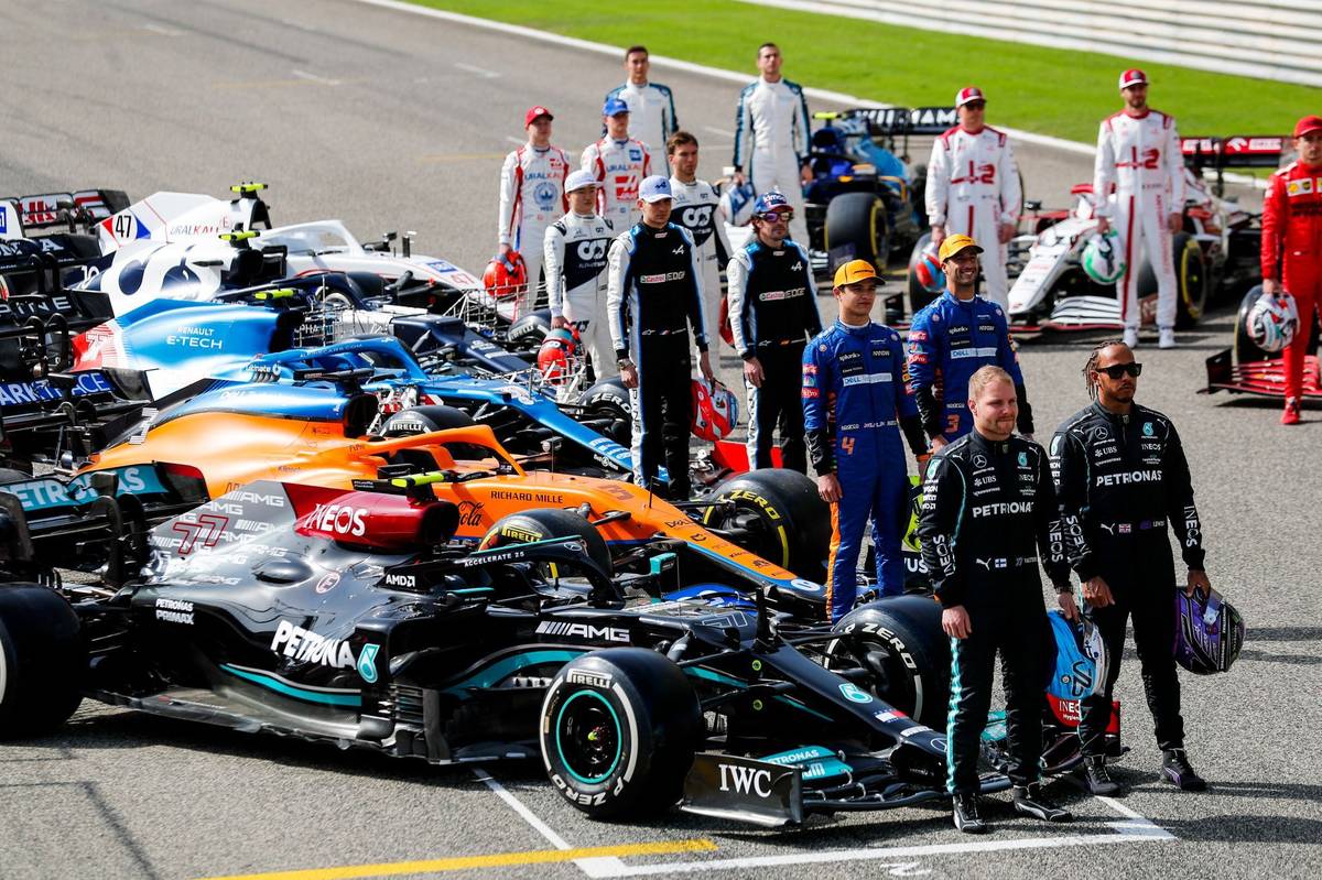Jezdci F1 se svými monopost před startem testů v Bahranu