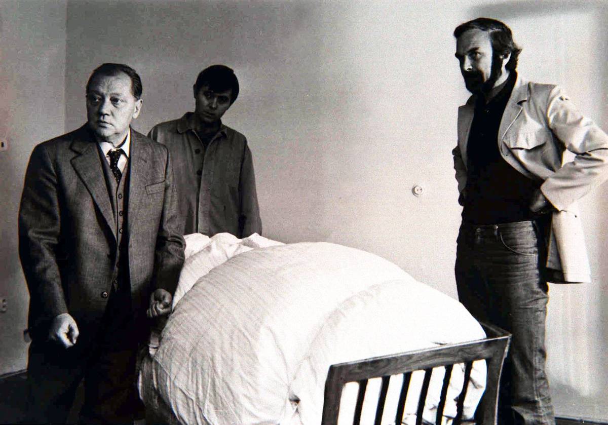 Foto z filmu Kulový blesk (1978) o výměně 12 bytů v Praze, která má proběhnout v jeden den. Náročné stěhování hatí řada situací. Svěrák hraje sběratele starožitností MUDr. Ječného, který se domáhá divanu, v němž je zastlaná údajná mrtvola. Film byl režijním debutem Ladislava Smoljaka, který jej natočil se Zdeňkem Podskalským.