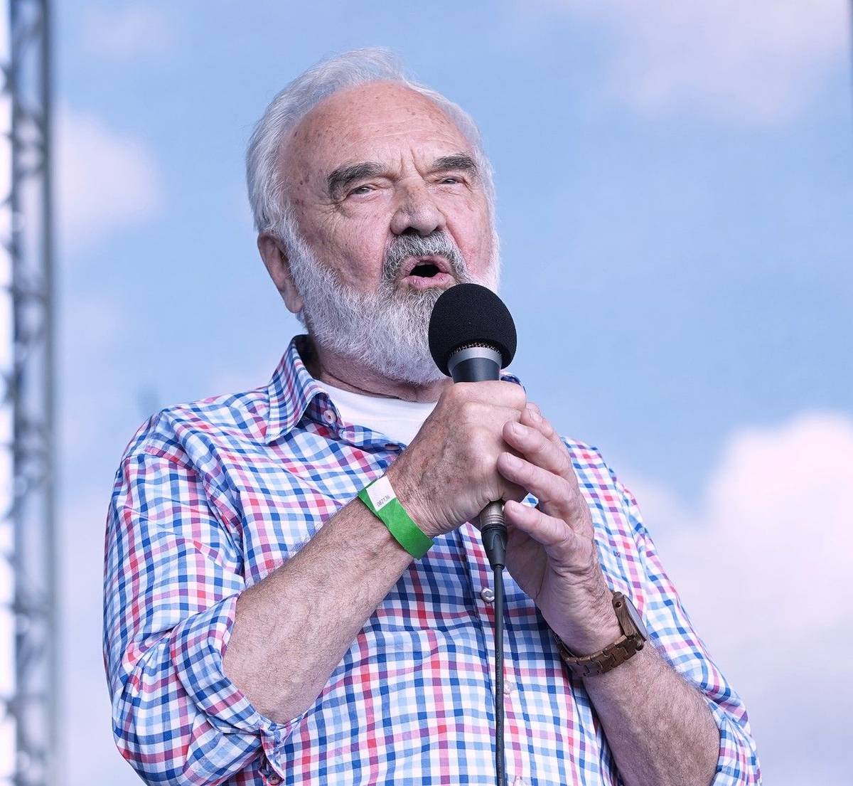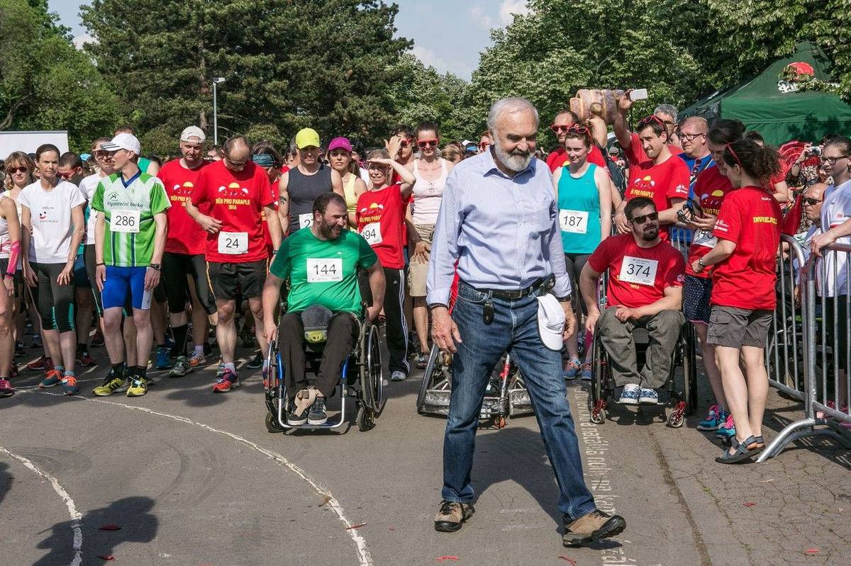 Svěrák je spoluzakladatel a velký propagátor Centra Paraple na podporu lidí na vozíku. Na snímku z pražské Letné zahajuje Běh pro Paraple.