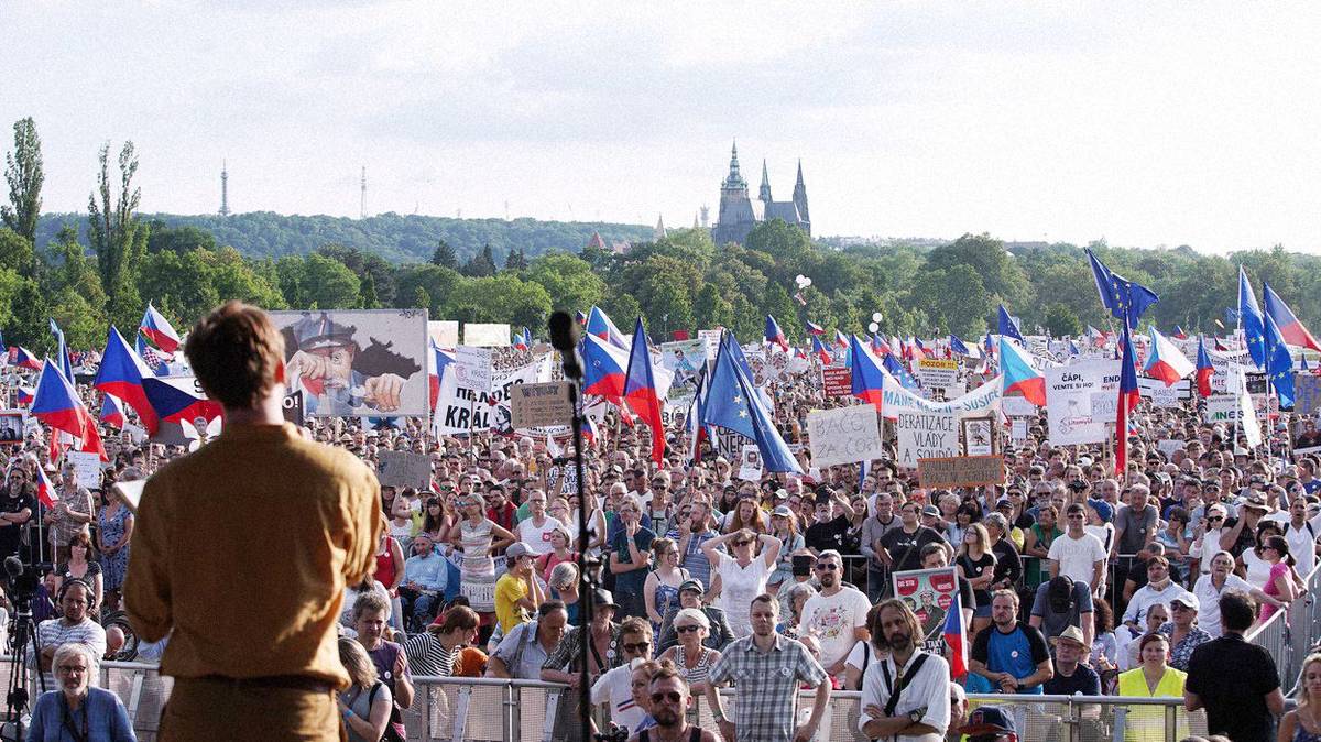 Demonstrantům zazpívali písničku o lupičích Pod dubem za dubem z pohádky Lotrando a Zubejda.