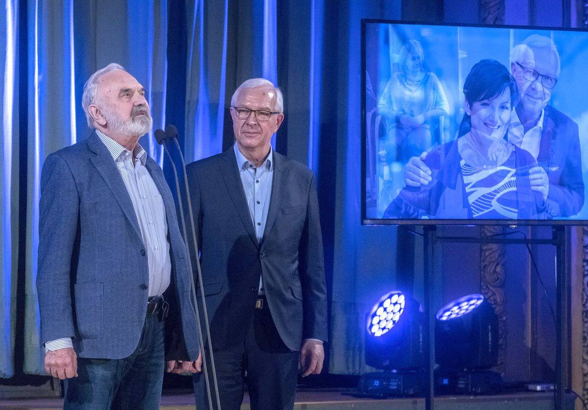Tvůrci laskavého humoru Zdeněk Svěrák a Jiří Menzel. Na snímku z roku 2013 otevírají výstavu Rozmarná léta Jiřího Menzela v Praze.