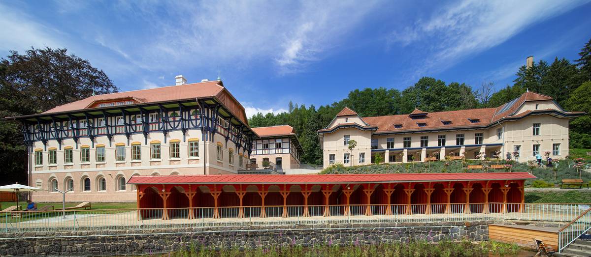 Budova Slunečních lázní uchvátí nádherně provedeným hrázděním.