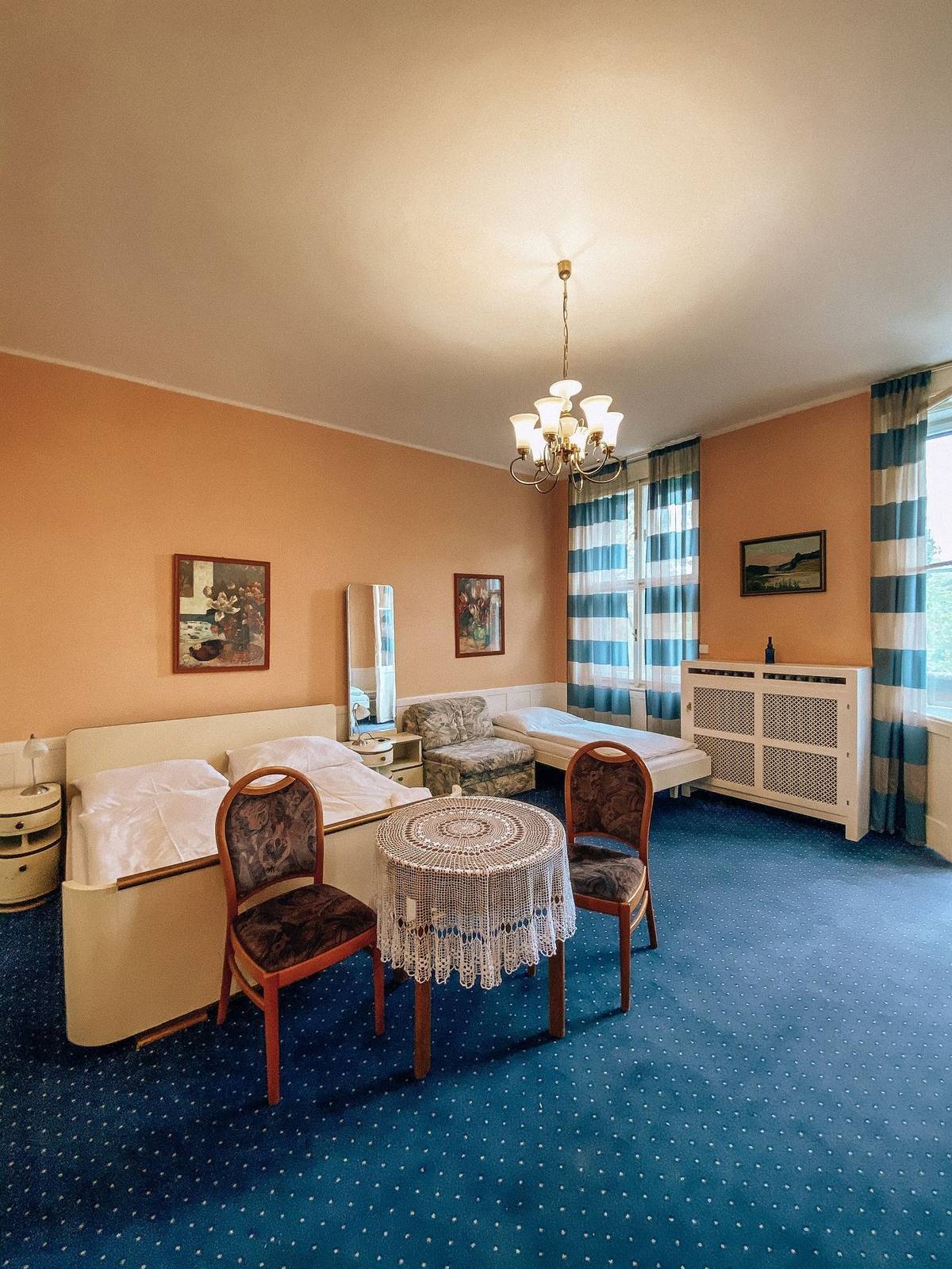 Vybavení bylo ve své době nadčasové. V pokojích je zabudovaný domácí telefon a skryté ústřední topení.