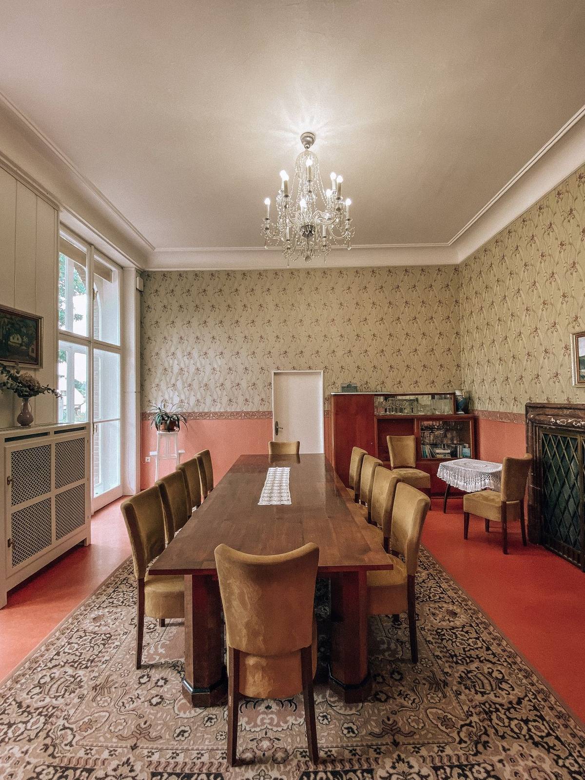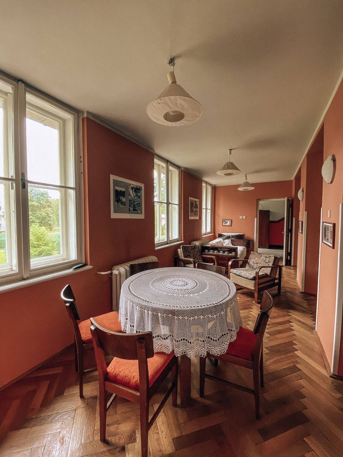 Interiéry jsou ale úchvatné. Ve většině místností je původní dřevěné obložení a vestavěný nábytek.